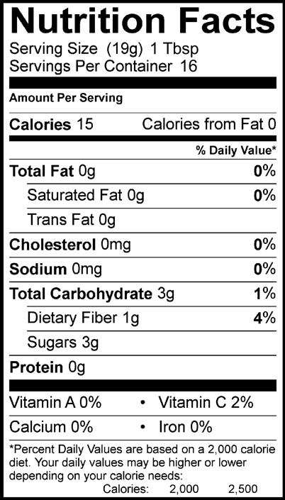 Ingredients: Sugar, peaches, water, pecans, pectin, citric acid, ascorbic acid and calcium chloride.